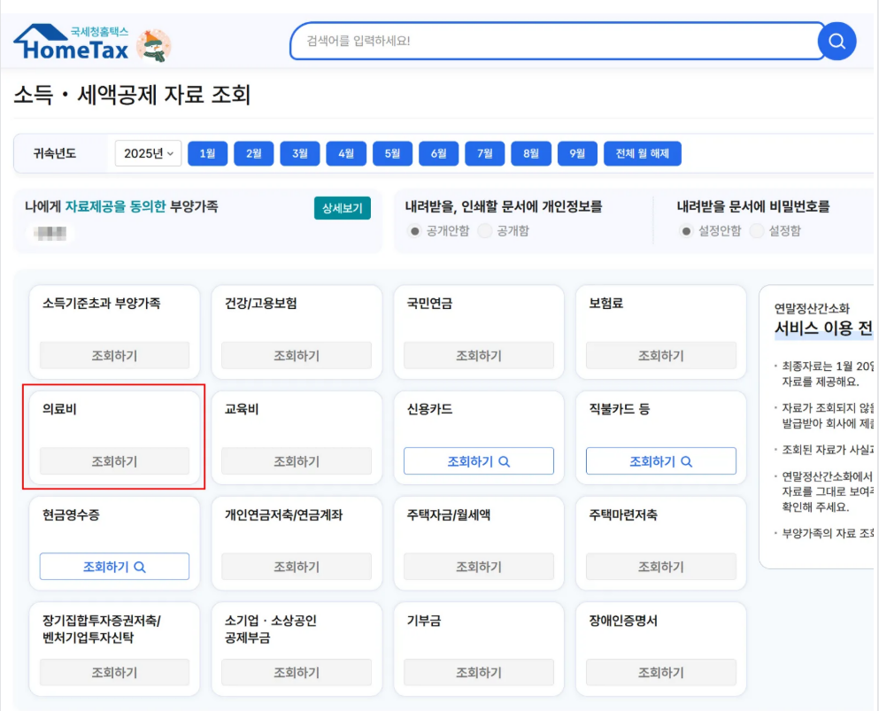 | 2단계 | [의료비] 항목 클릭 및 상세 내역 조회 |